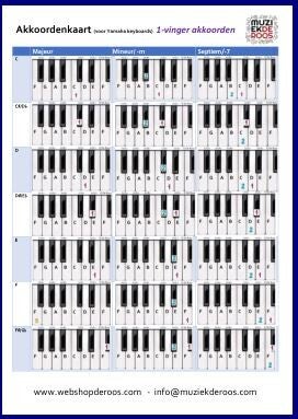 De Akkoordenlegger is er voor piano en/of keyboard. Een belangrijk verschil met de 3 andere Akkoordenkaarten is dat hij heel snel werkt maar dat de noten niet altijd in de logische volgorde staan. Wel zal het display van uw keyboard altijd het juiste akkoord aangeven.