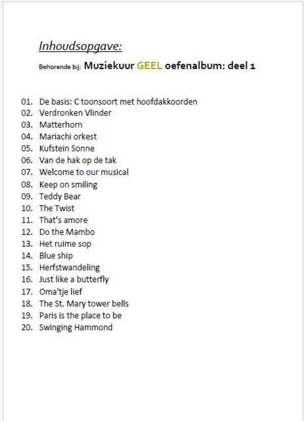 Muziekuur Geel Oefenalbum deel 1 (zonder de bijbehorende lesvideo's)