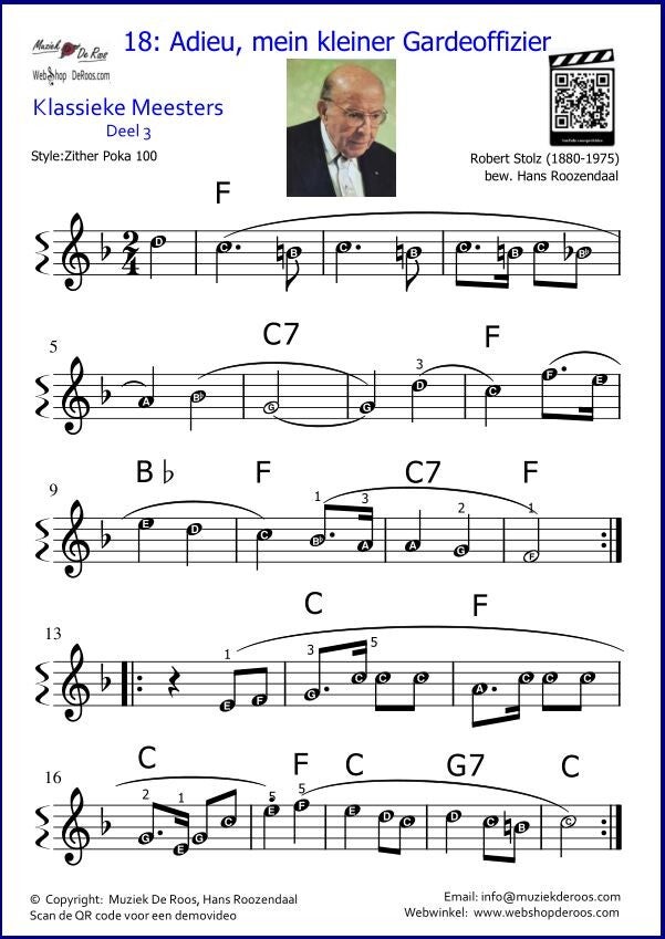 Elk nummer heeft een QR code. Deze kunt u scannen met uw telefoon, iPad of tablet en de code die dan verschijnt leidt naar een YouTube instructievideo. Hierin wordt het nummer voorgespeeld.