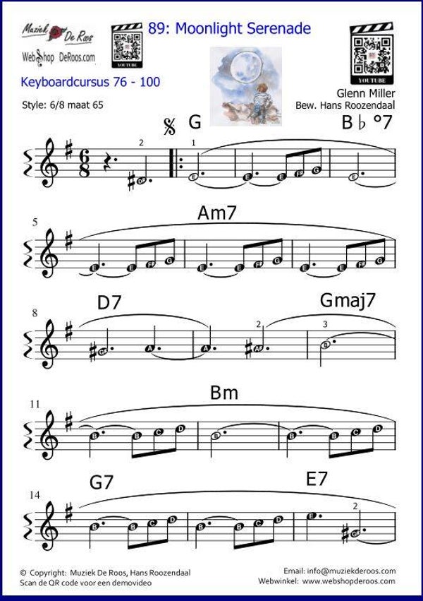 Een PDF kunt u dan op uw i-Pad/laptop of tablet zetten en deze dan bij uw instrument gebruiken. Bijvoorbeeld in combinatie met de bijbehorende videolessen. Natuurlijk kunt u de PDF ook zelf uitprinten voor eigen gebruik.