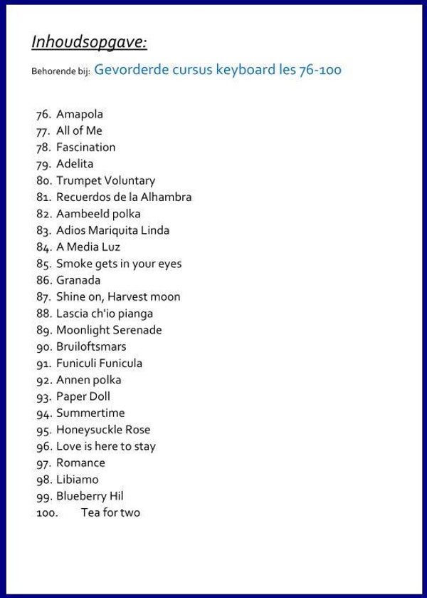 Cursusboek Gevorderd KEYBOARD, les 76-100